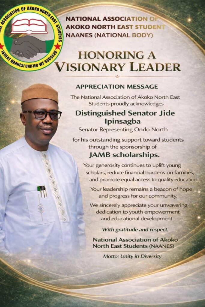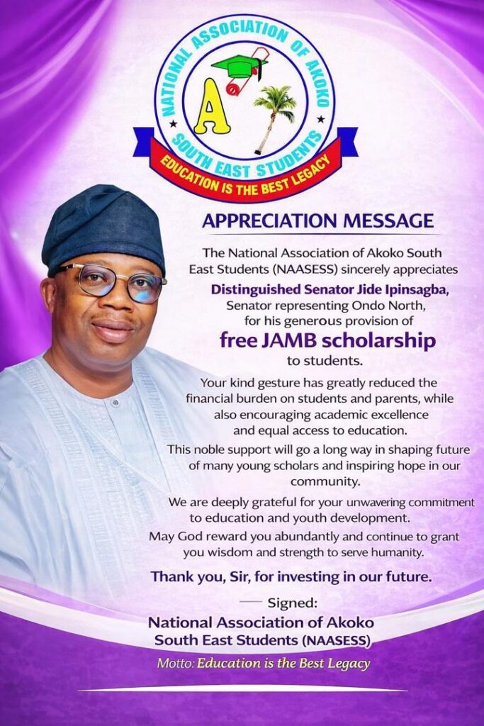 Akoko South East Students hail Senator Ipinsagba on JAMB scholarship