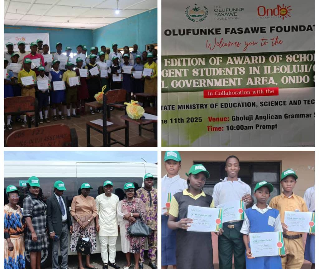 The Olufunke Fasawe foundation has presented scholarship awards to thirty-six indigent students across eighteen schools in Ile-oluji/Okegbo local government area of Ondo state.