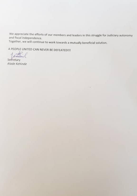 “Commitment on the part of the state government to implement our demands on compliance with the provision of the law on release of fund to Ondo State judiciary.