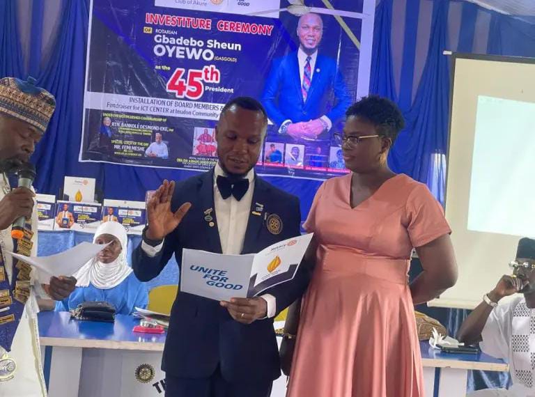 Rotarian Gbadebo Sheun Oyewo has been installed as 45th President of the Rotary Club of Akure, vowing that to implement impactful projects targeting underserved communities.