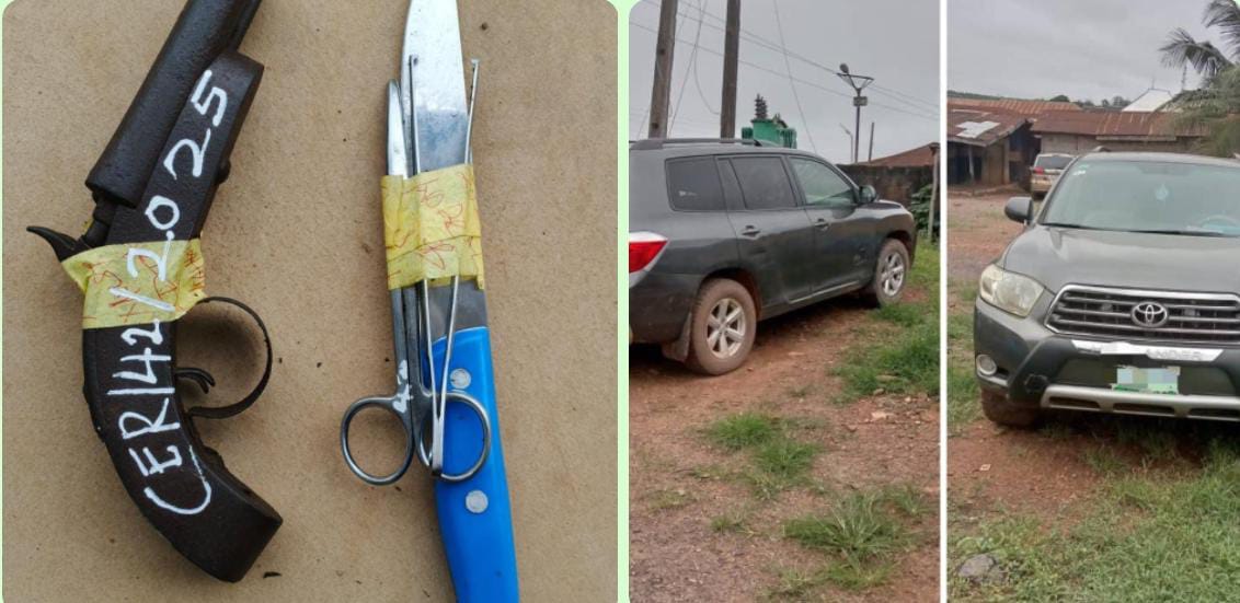 Upon receiving the distress call, the Divisional Police Officer (DPO), Idanre Division, swiftly led a team of surveillance operatives to the scene. Although the suspects had fled before their arrival, a prompt intelligence-driven manhunt led to their arrest and the recovery of one locally made pistol, one kitchen knife, two pairs of scissors, and one axe. The victims were immediately taken to the hospital for treatment, while the suspects remain in custody, assisting investigators with useful information.