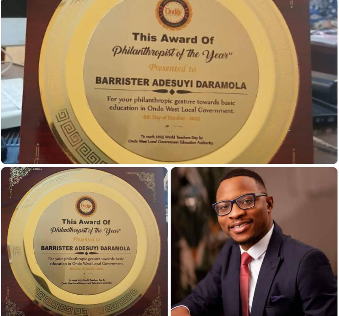 Teacher’s Day 2025: Ondo West Education Authority Honours Barr. Adesuyi Daramola with Consecutive “Best Philanthropist in Basic Education” Award